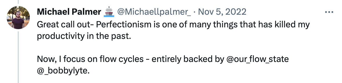You can probably see how deeply I care about this.But inspiring flow state isn’t unique to me at all.Think about your own work.Go far enough down the chain of what you do and you’ll find that ultimately, your work is meant to inspire flow state in others. To help people live a more present, peaceful and joyful life.Am I wrong? 😉