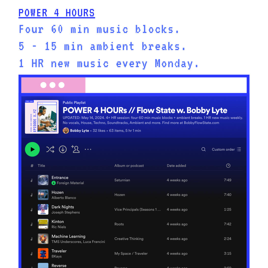 I'm curating and mixing more up-tempo music with members who want to amp up their flow. A 65+ minute DJ set specifically designed for focus in your inbox every month.In addition I'm sharing DJ sets from the different places I visit around the world.
